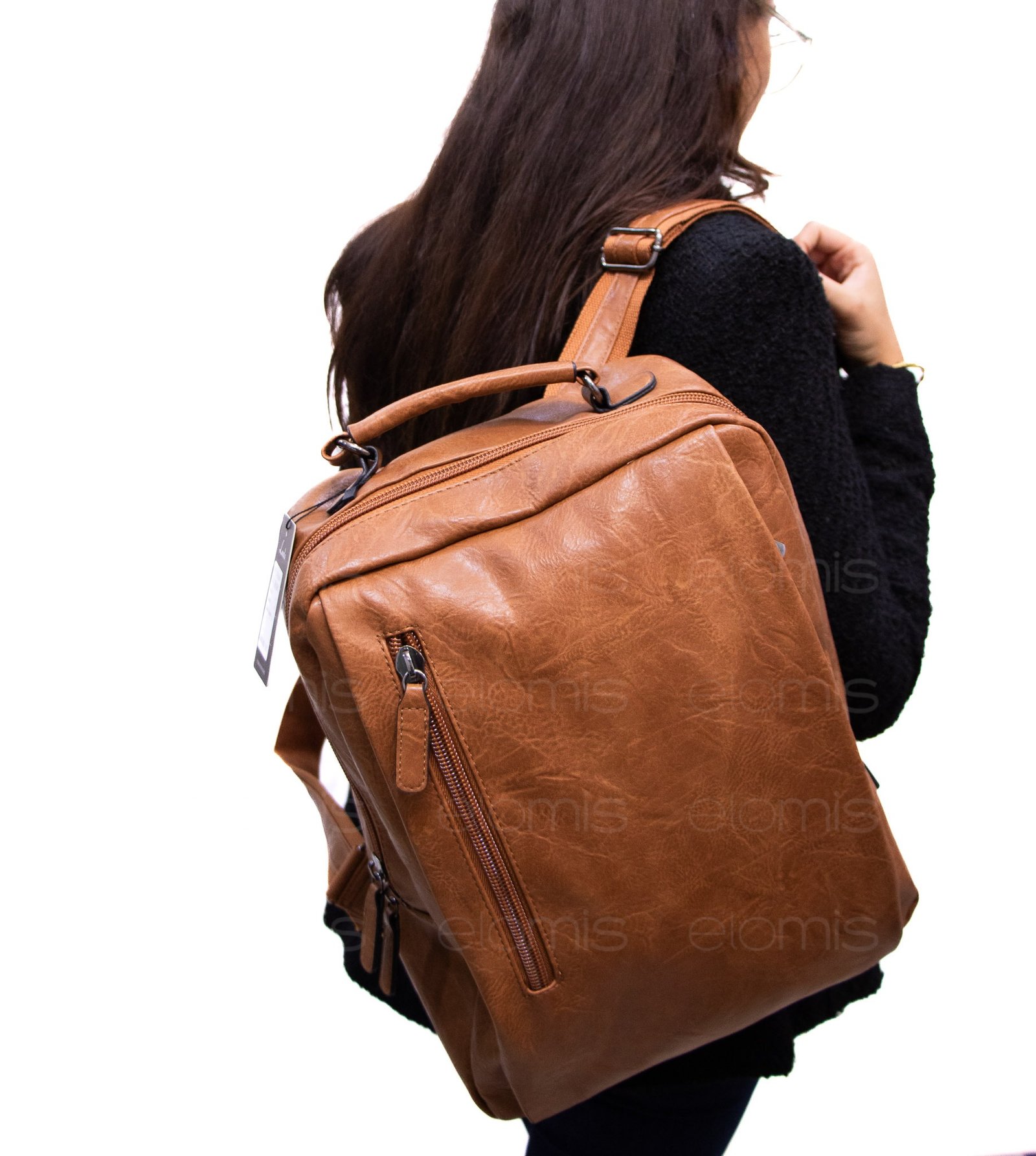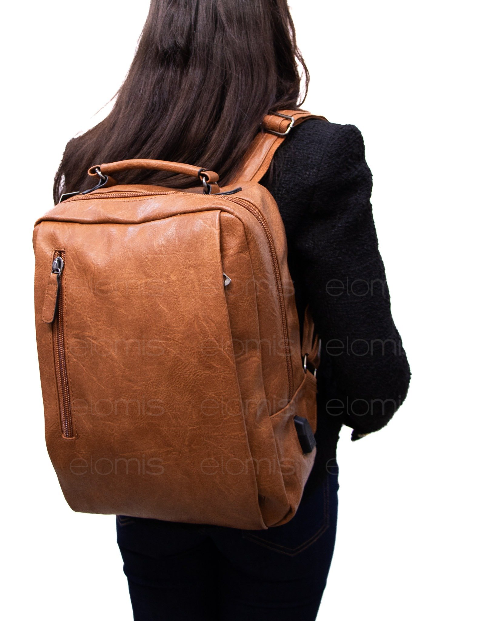 Grand sac à dos ” Paolo Bags ” à double compartiments séparés – Marron camel