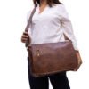 Grand sac à main / cartable ” VICTORIA J “à triple compartiments séparés – Marron