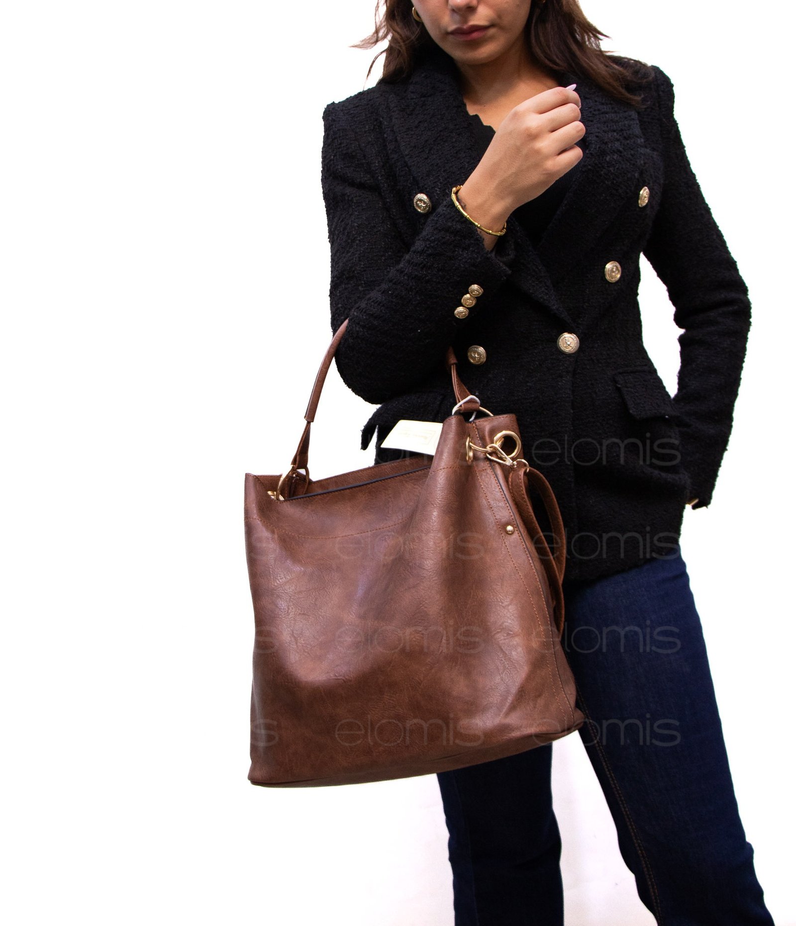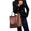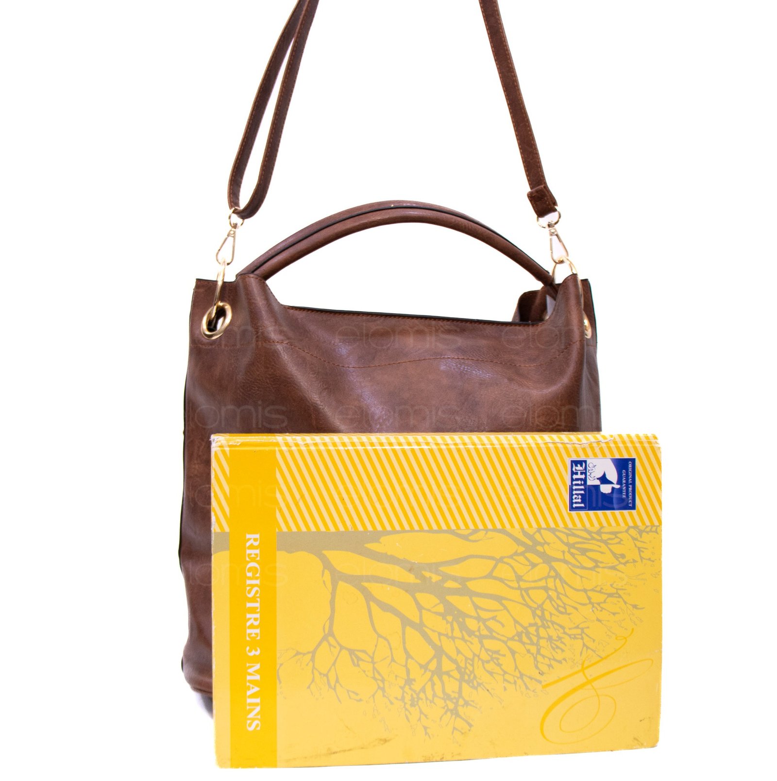 Grand sac à main / cartable ” VICTORIA J “à triple compartiments séparés – Marron