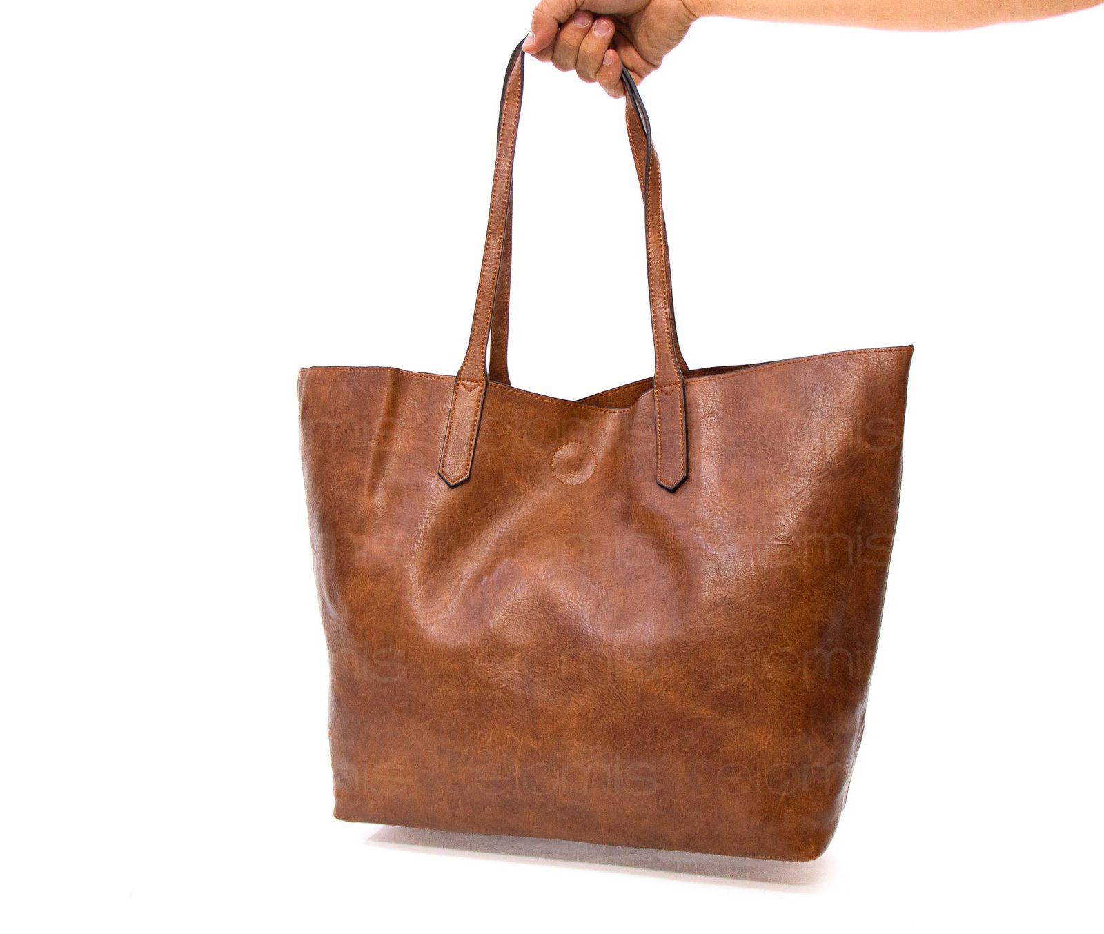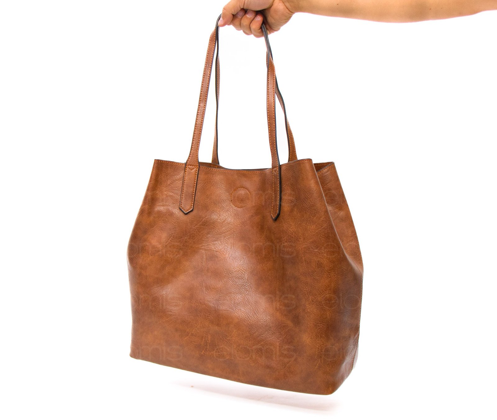 Grand sac à main / Sac cartable à triple compartiments interne – Marron