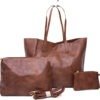 Grand sac à main / Sac cartable à triple compartiments interne – Marron foncé