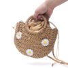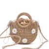 Petit sac bandoulière effet liège arrondi avec fleurs jaunes – Taupe