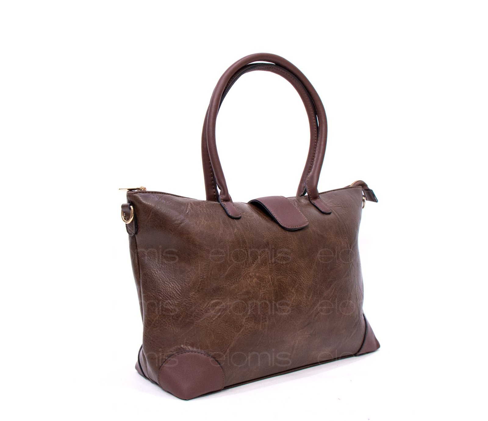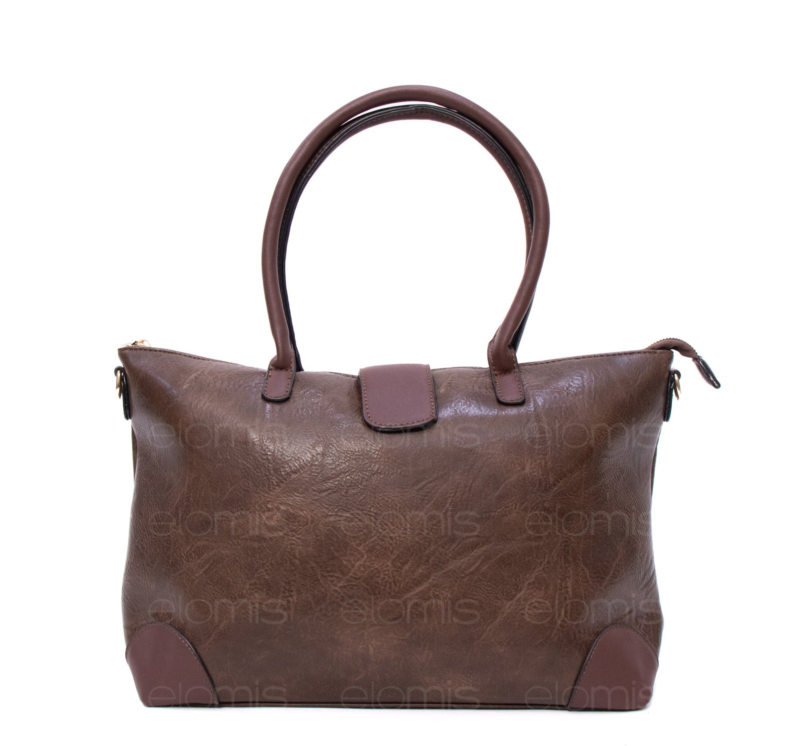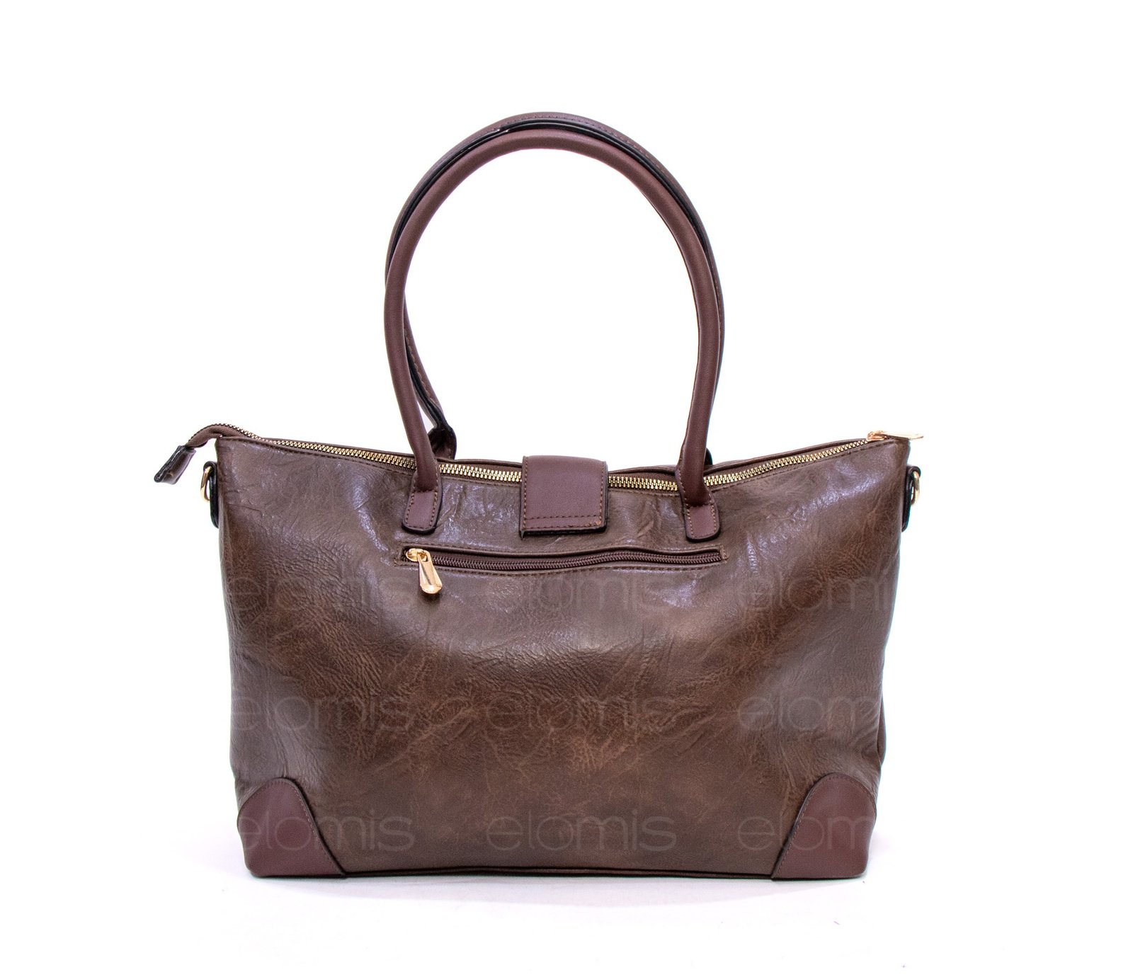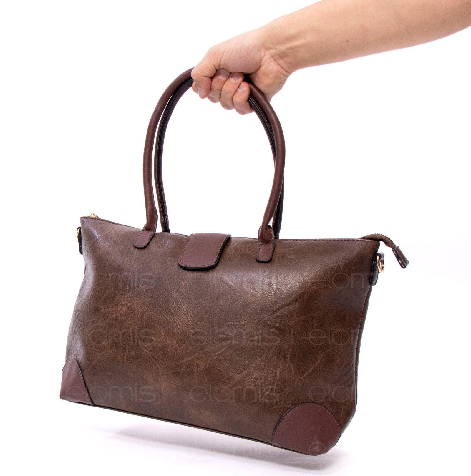 Sac à main / porté épaule ” Fashion Bag ” cuir synthétique effet tissu – Gris foncé / Noir