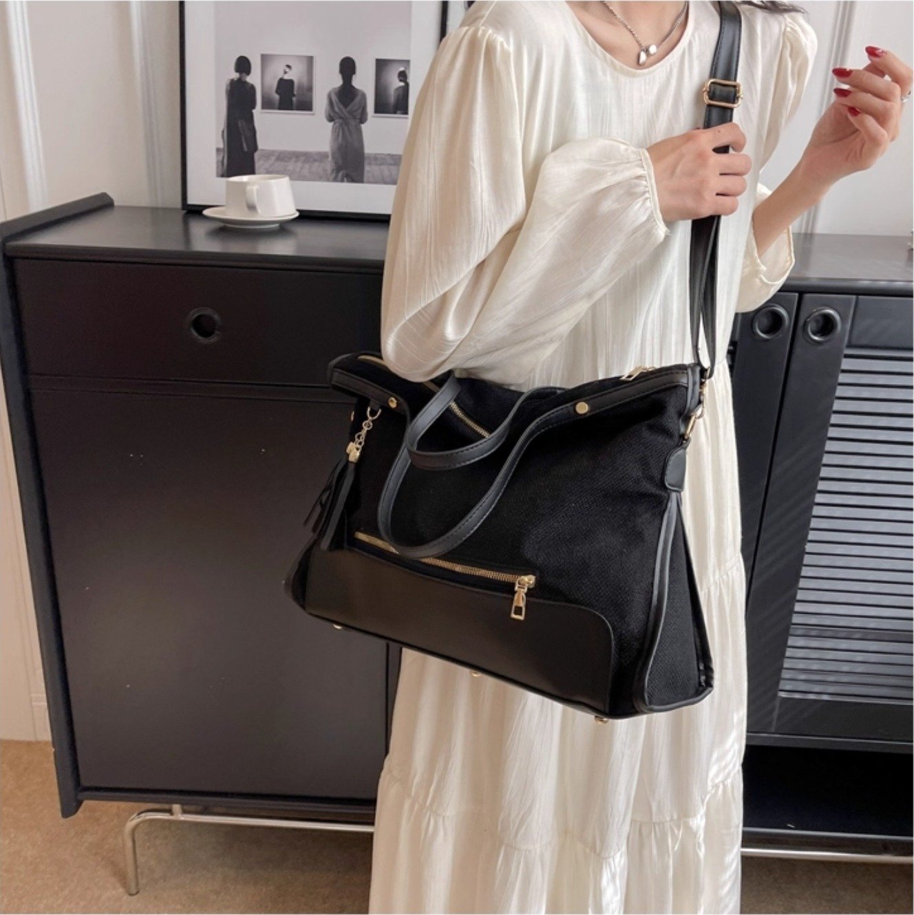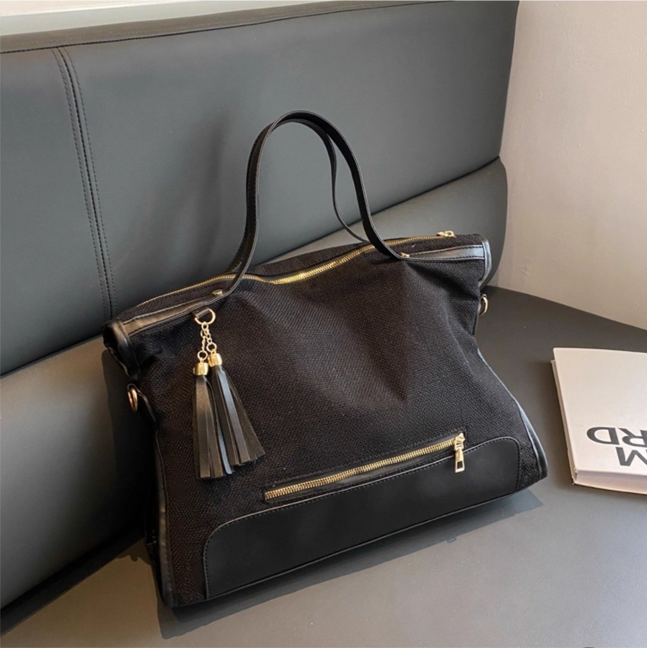 Grand sac ” VALENTINI GINO ” à triple compartiments interne – Noir