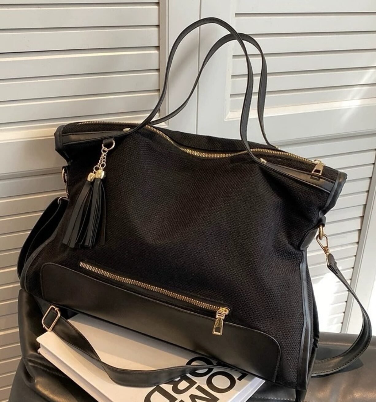 Sac cartable ” JGJ Just Glamour ” coupe moderne avec compartiment pour ordinateur 15″ – Noir