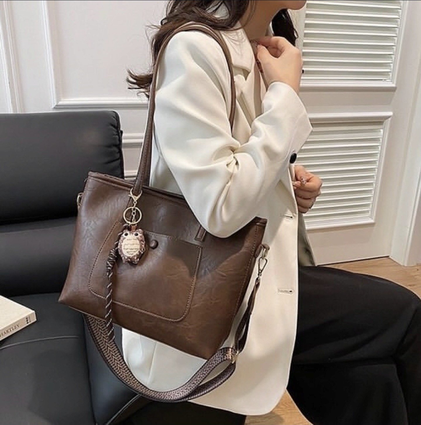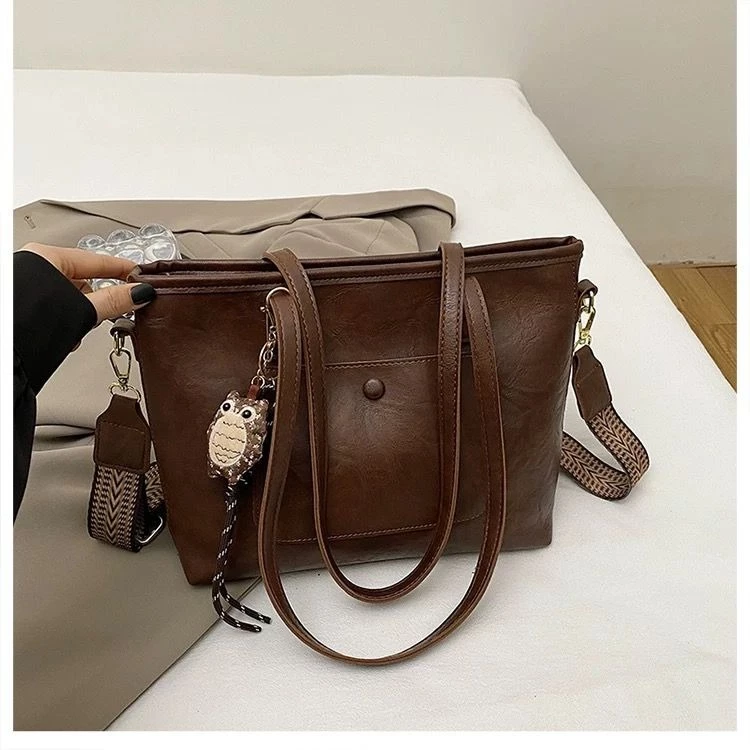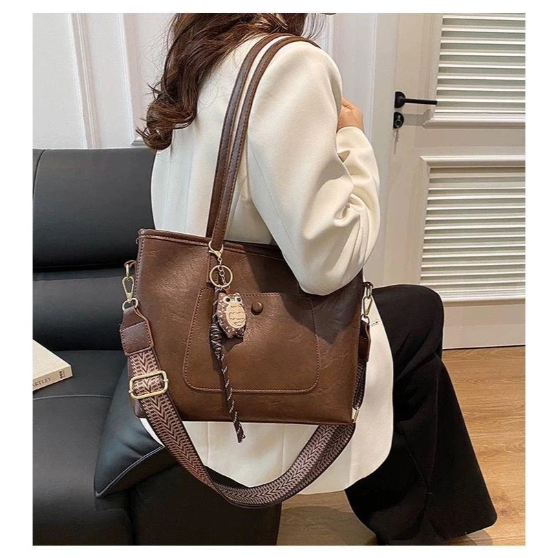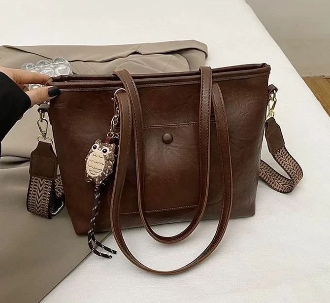 Sac à main / porté épaule” Fashion Bag ” vintage à triple compartiments – Marron foncé