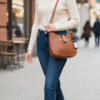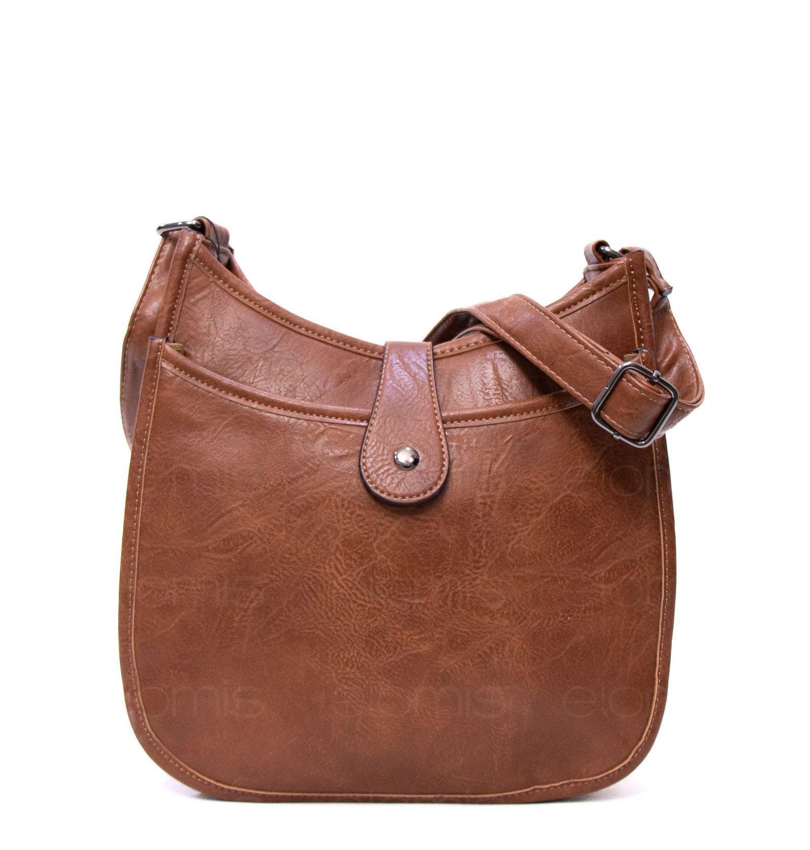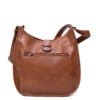 Grand sac bandoulière” BAGCO ” en tissus finitions cuir – Beige / Finitions Marron