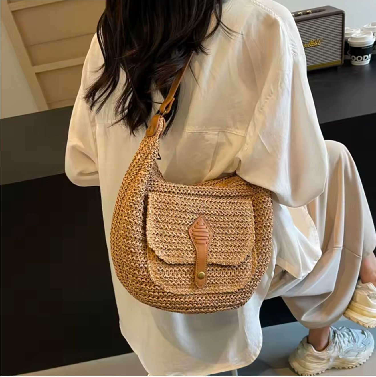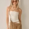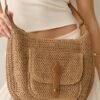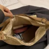 Sac bandoulière effet liège avec poche avant – Taupe / Finitions