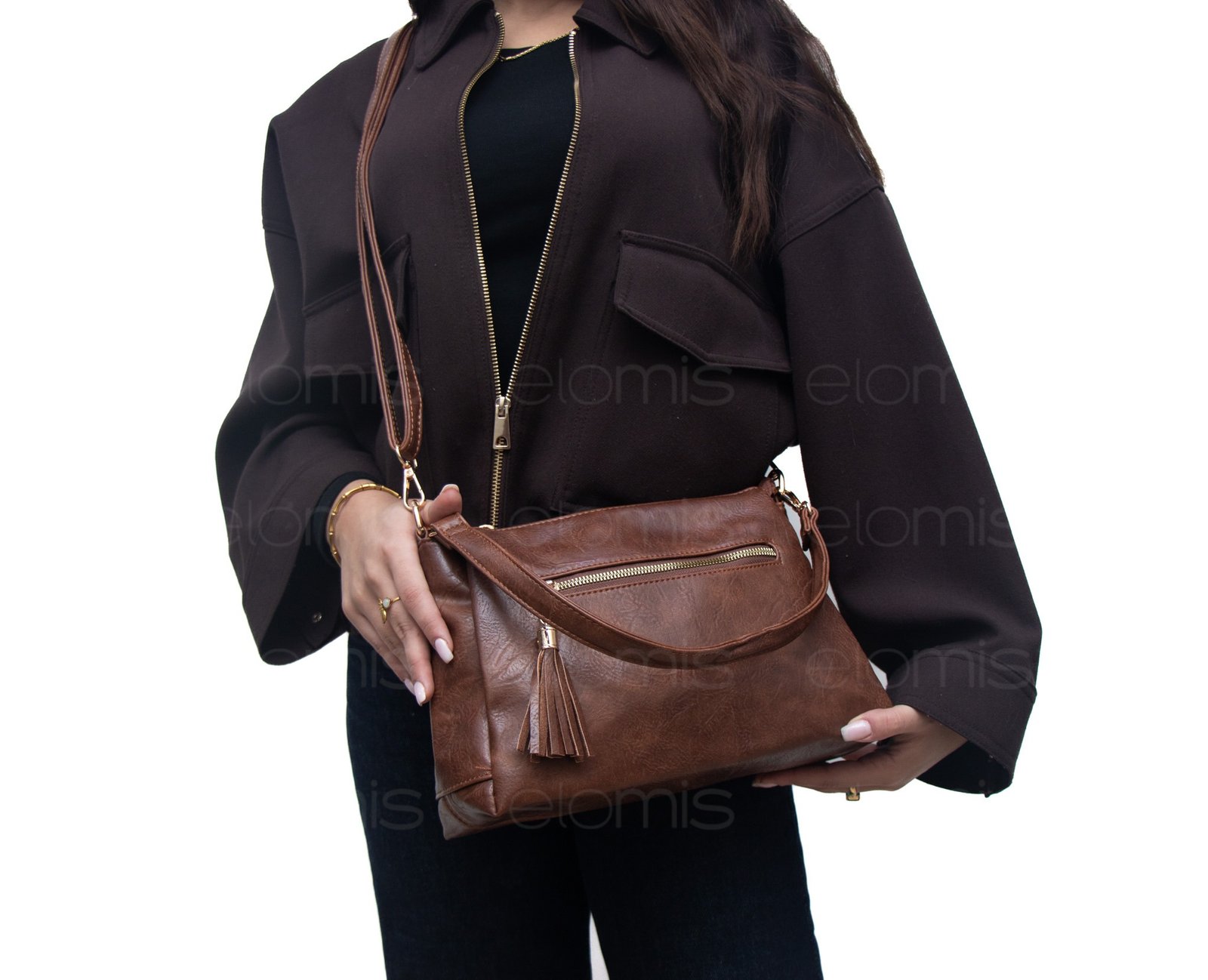 Sac cartable moyenne taille ” Marina Rylan ” à triple compartiments interne – Marron foncé