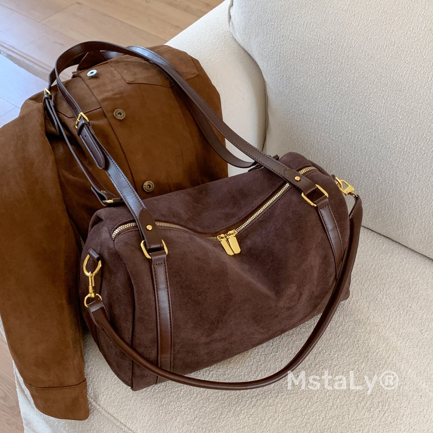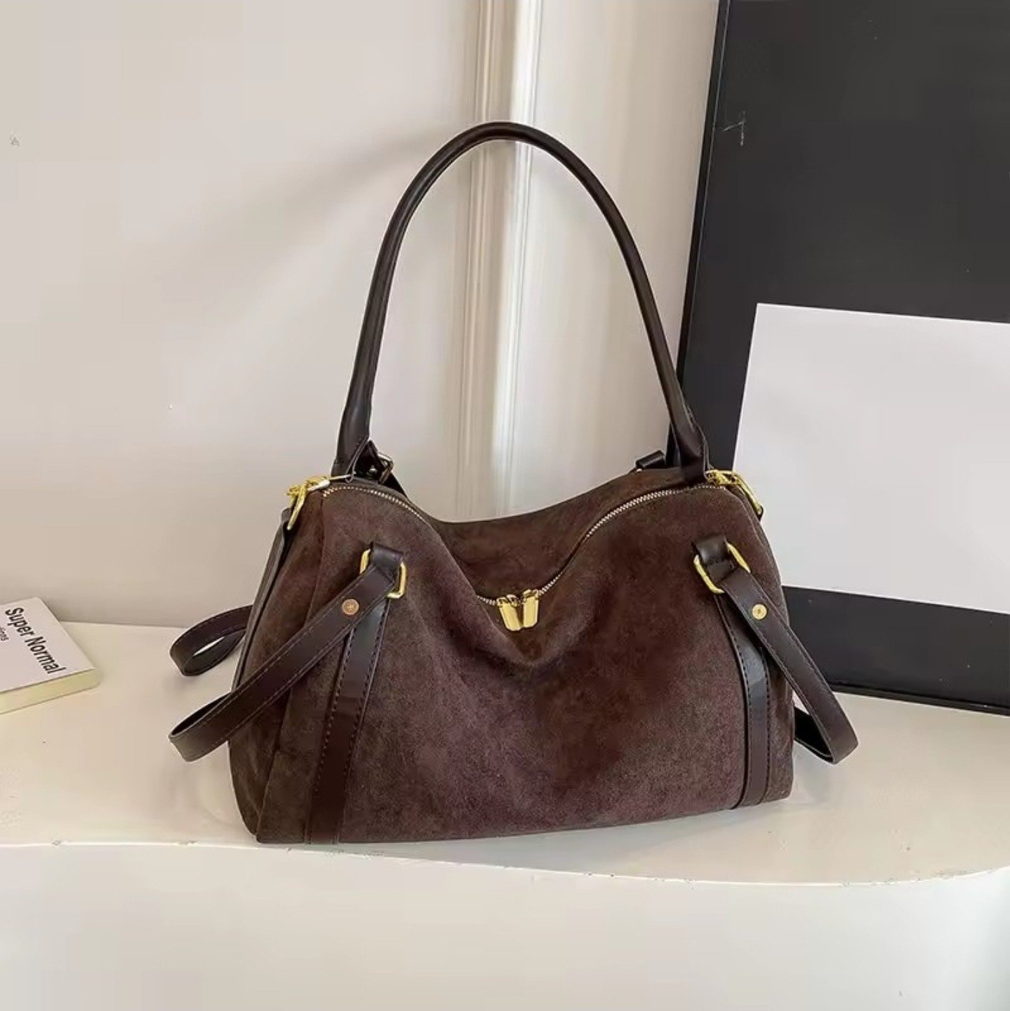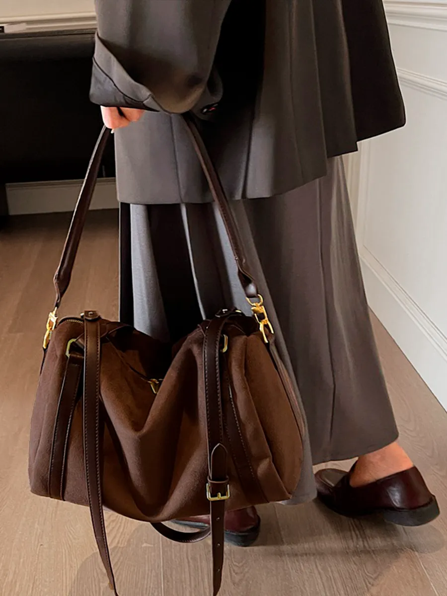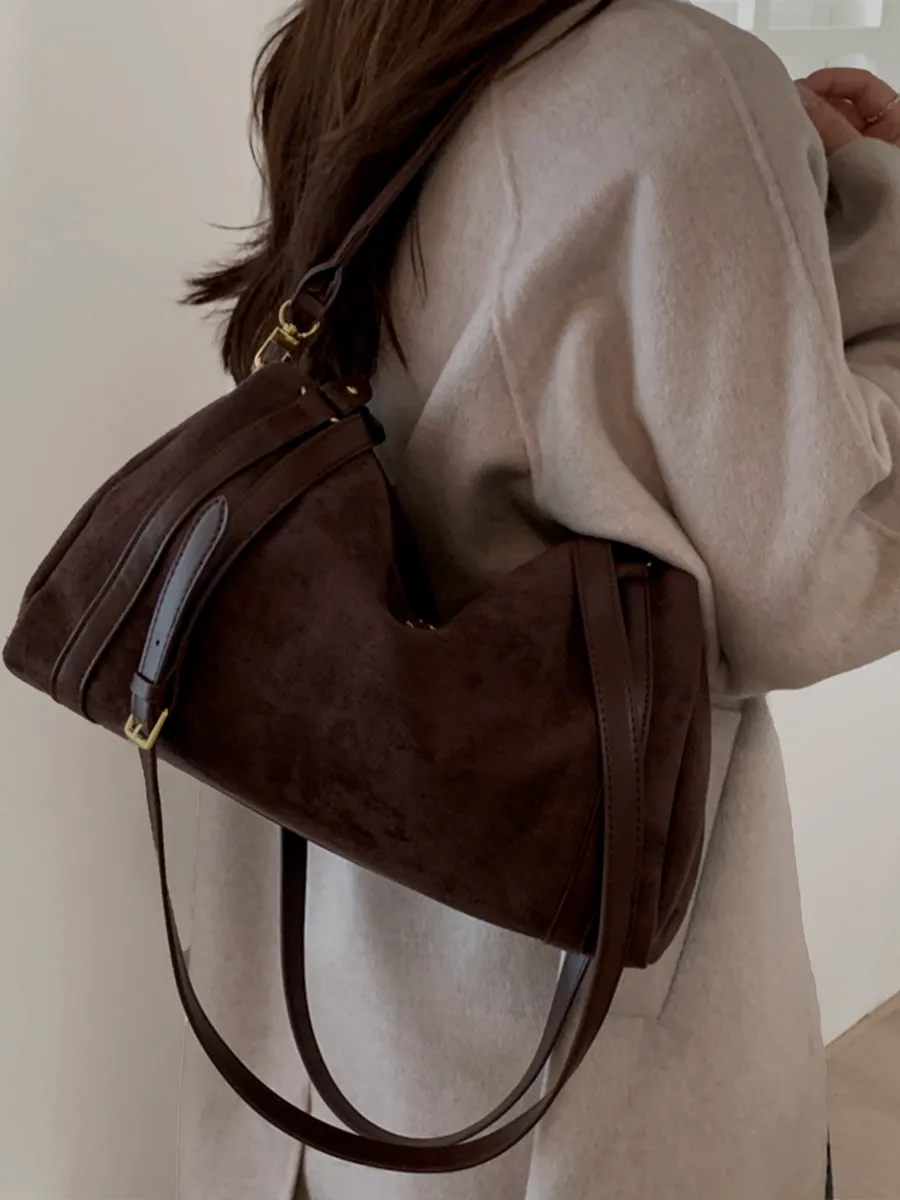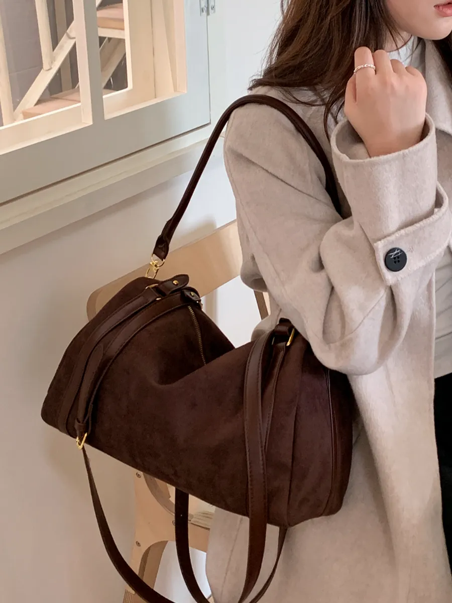 Découvrez notre nouveau sac en daim, sublimé par de magnifiques finitions en cuir synthétique qui lui apportent une touche chic et intemporelle.Sa conception type fourre-tout offre un espace généreux pour transporter tous vos essentiels au quotidien, tout en restant extrêmement léger et confortable à porter.