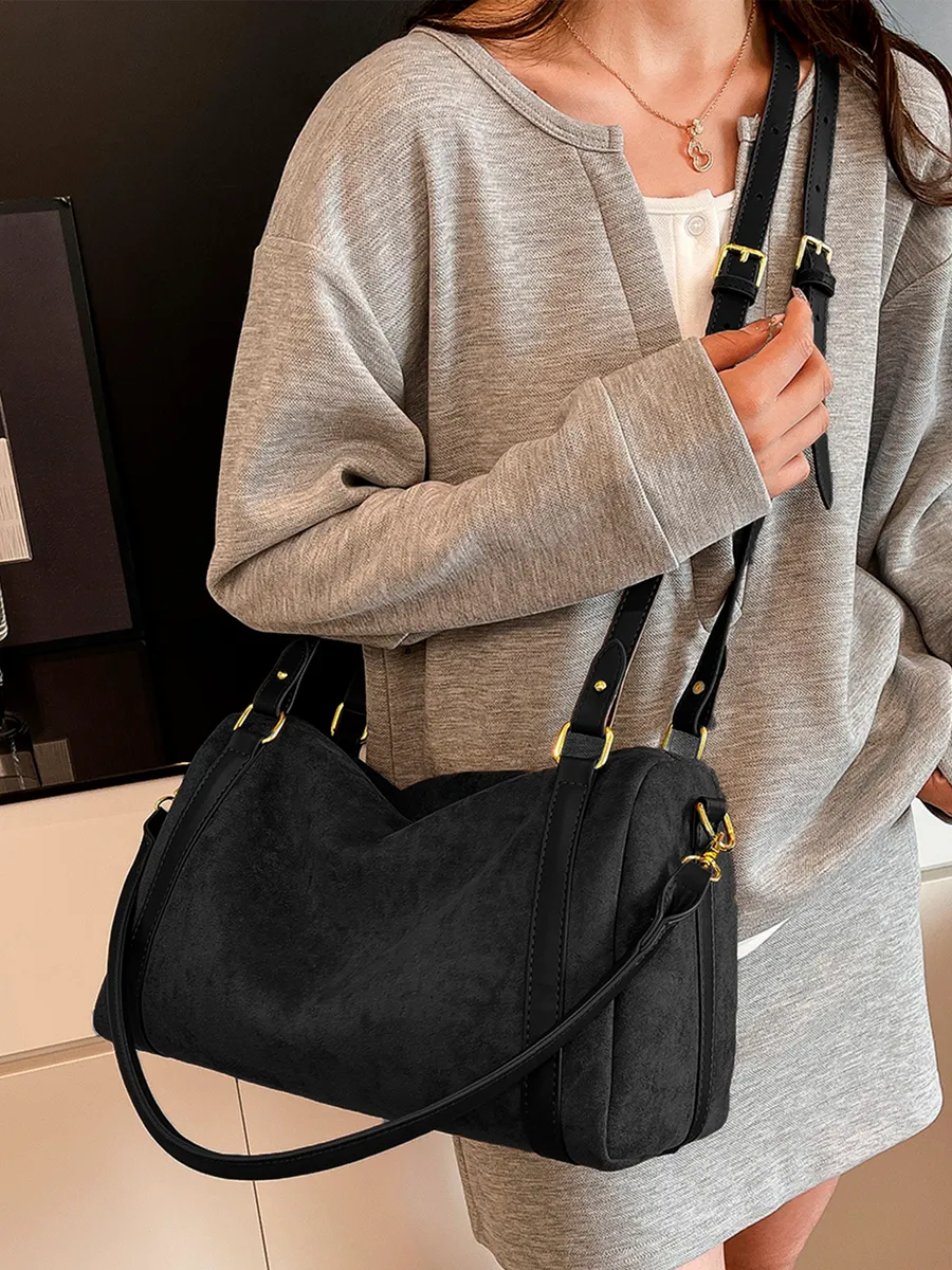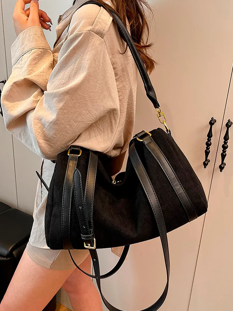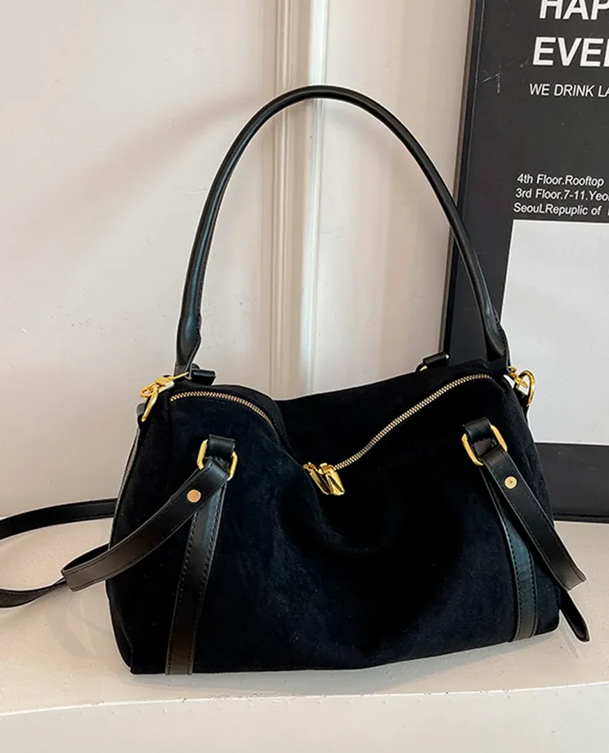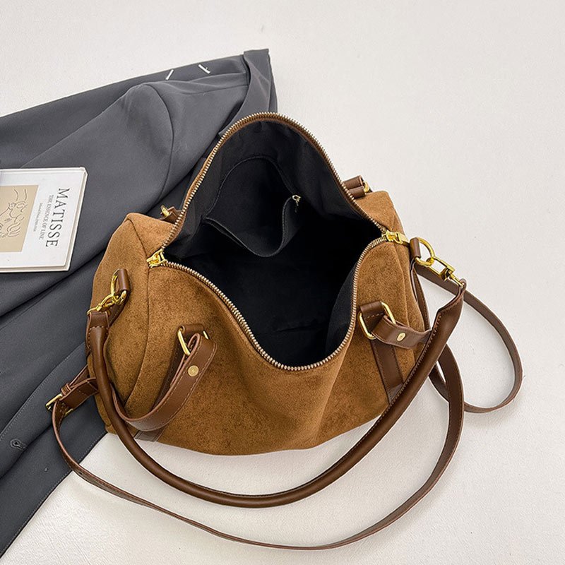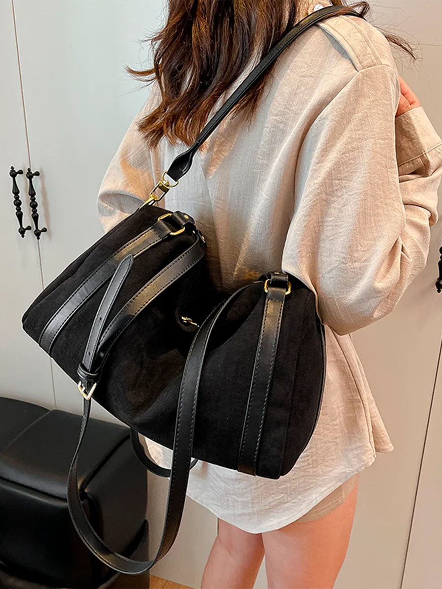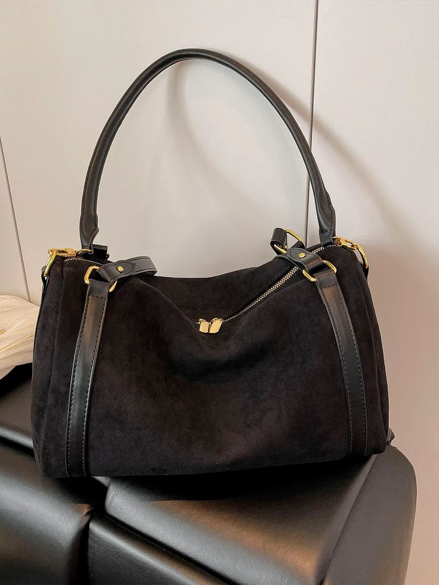 Découvrez notre nouveau sac en daim, sublimé par de magnifiques finitions en cuir synthétique qui lui apportent une touche chic et intemporelle.Sa conception type fourre-tout offre un espace généreux pour transporter tous vos essentiels au quotidien, tout en restant extrêmement léger et confortable à porter.
